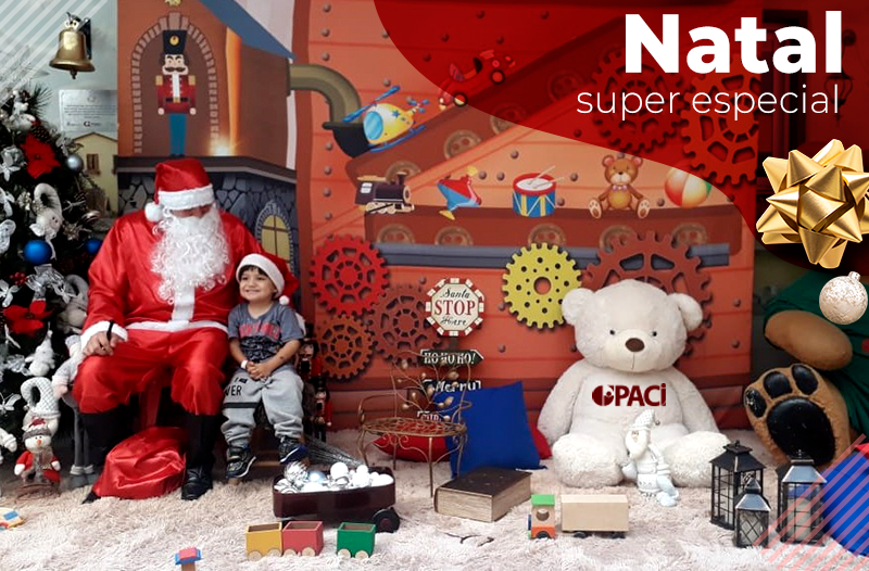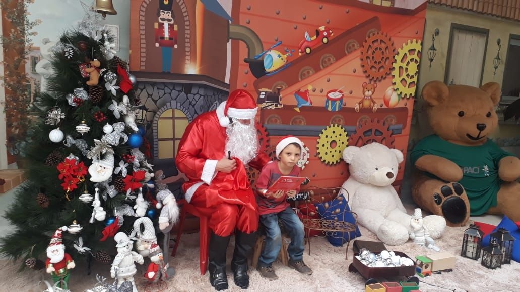 Tivemos a felicidade de receber o Papai Noel no maior estilo natalino, um cenário lindo feito com muito carinho e amor para nossas crianças.